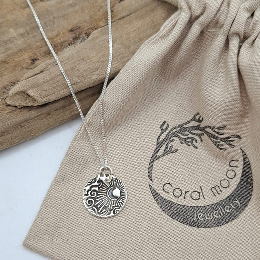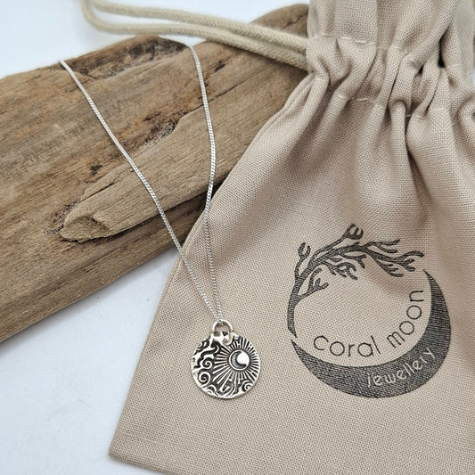 Breaking waves & rising moon silver pendant | Coral Moon Collection