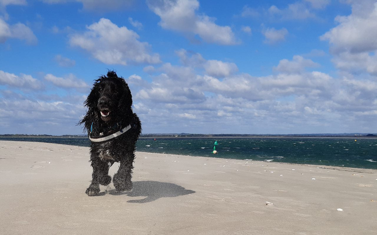 When I’m not in the studio, you’ll find me on the beach with Dudley, my cocker spaniel (and workshop buddy)!